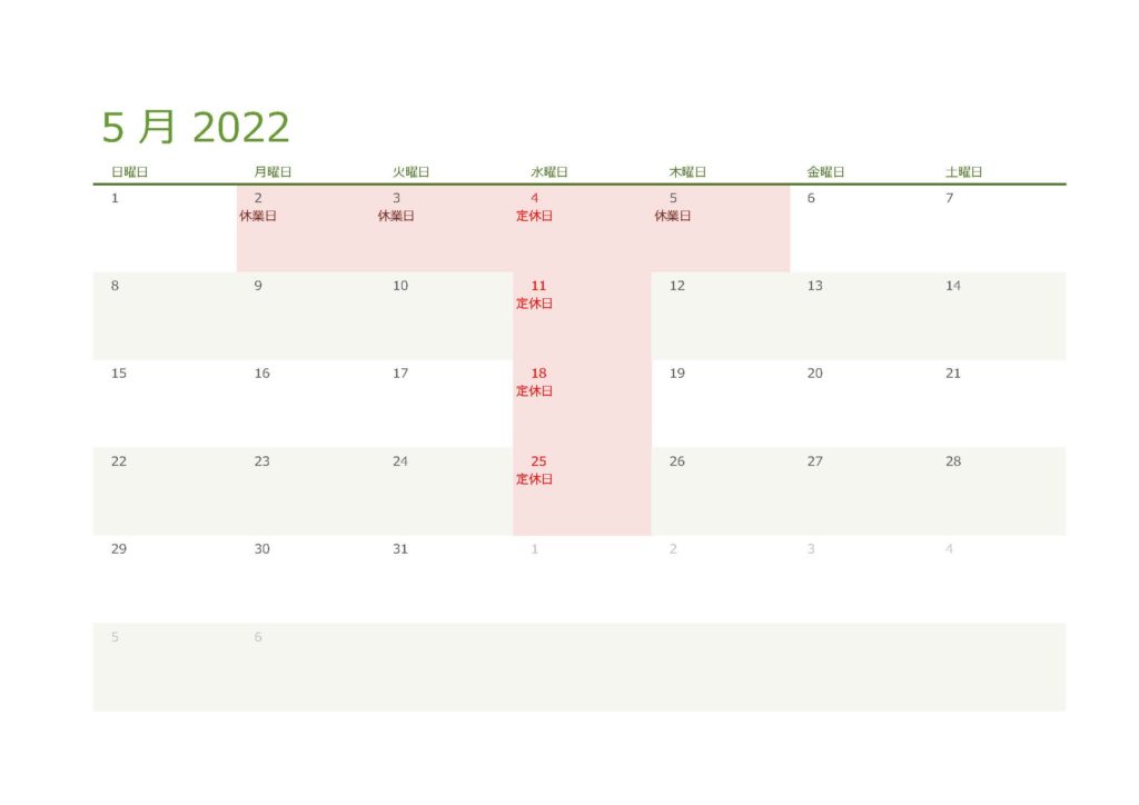 5月営業日のお知らせ