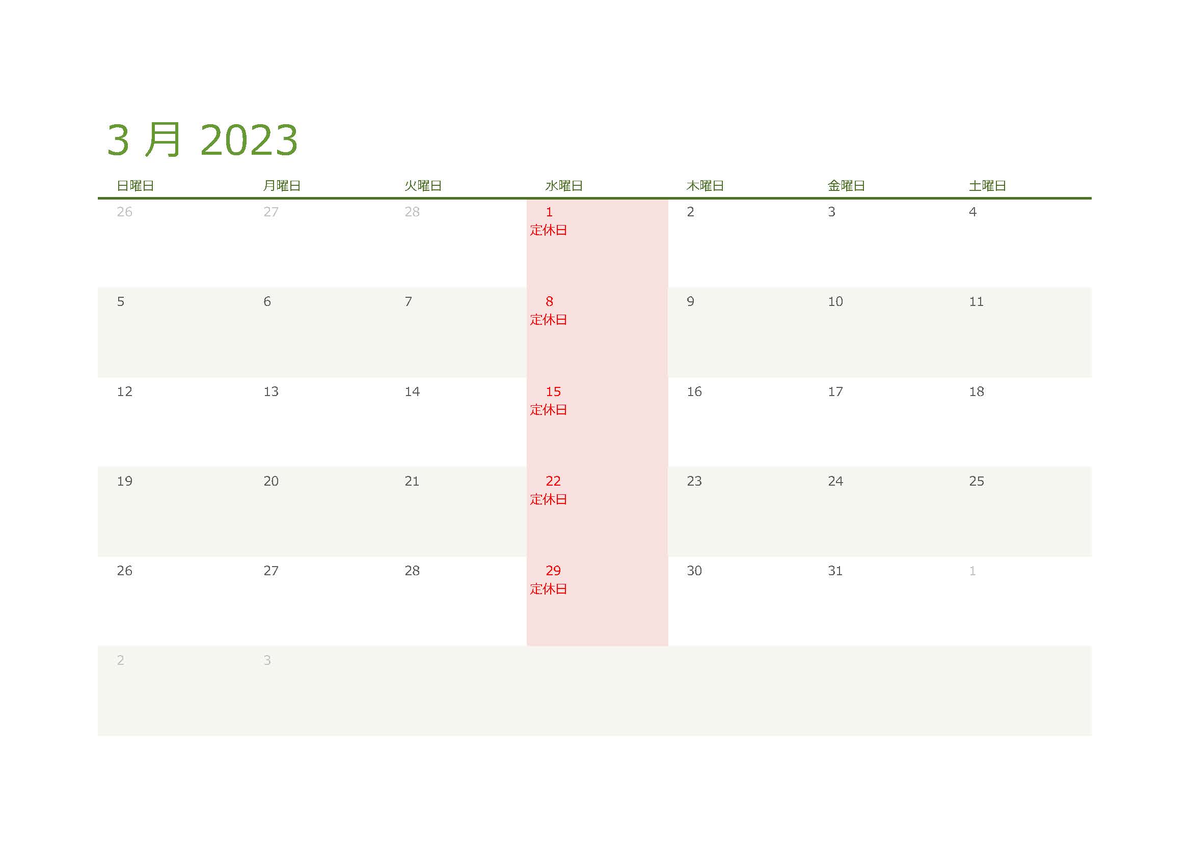 3月の営業日はこちらをご覧ください。