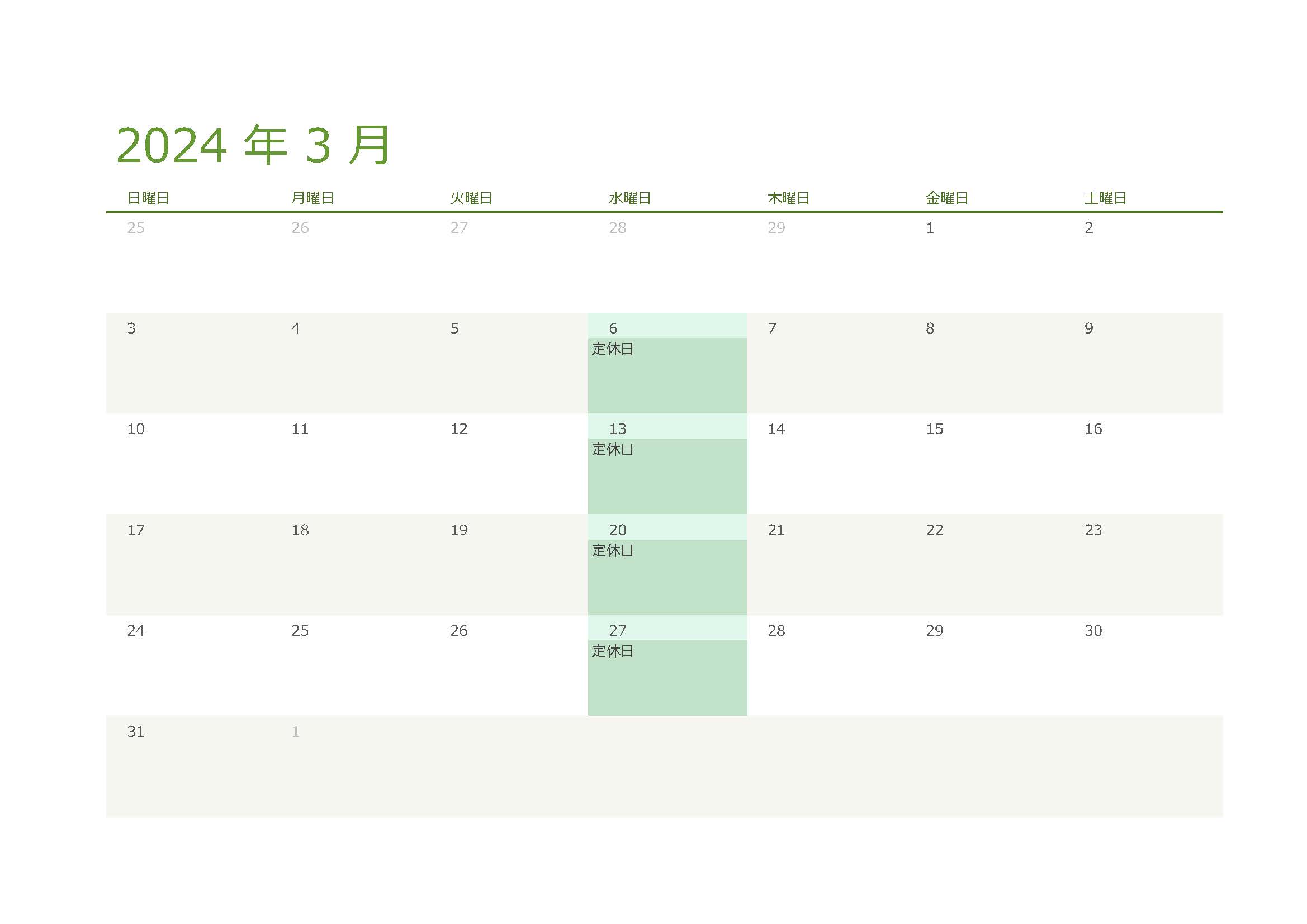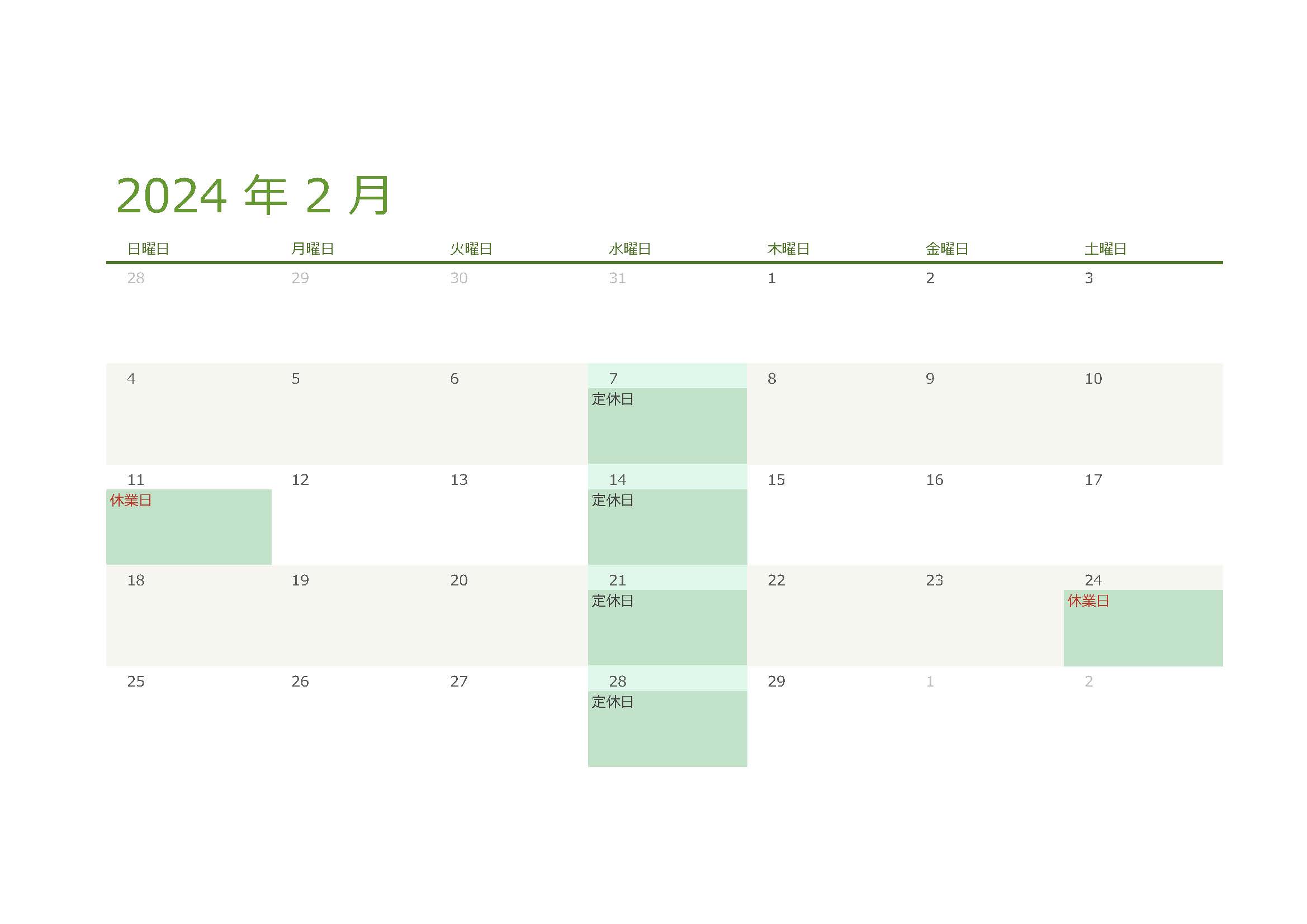 2024年 1月 2月 3月営業日のお知らせ