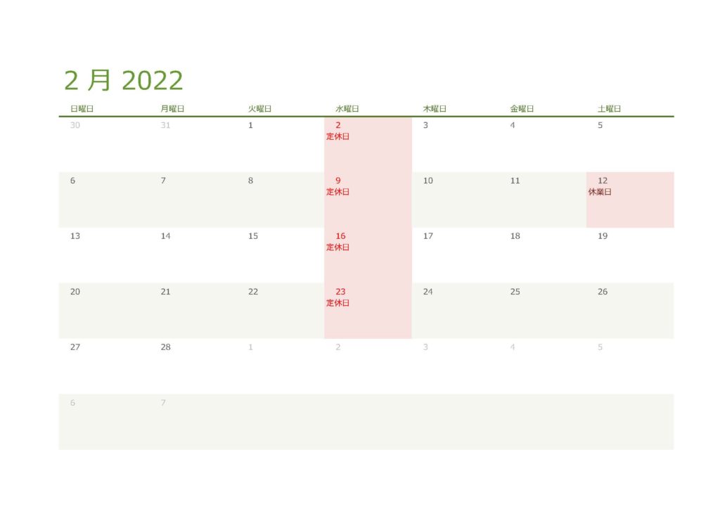 2月営業日のお知らせ