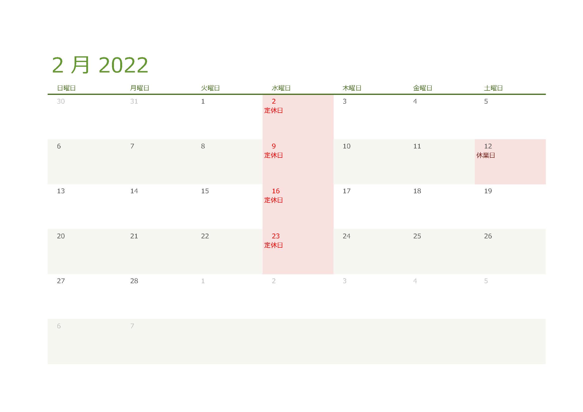 2月の営業日はこちらをご覧ください。